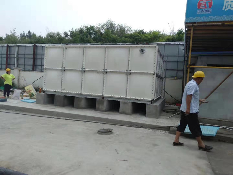 供貨單位(wèi):山東省91抖阴短视频集團武城模壓製品有限公司施工單位:天津武清(qīng)區運河小鎮產品名稱:玻璃(lí)鋼水箱產品型號:5*4*2 安裝現場如圖: