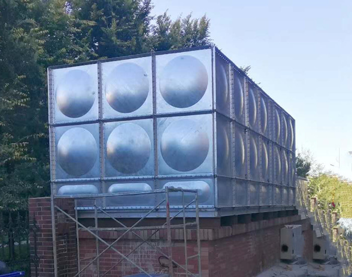 鍍鋅鋼板水箱是按照02S101製造生產的新型裝配式水箱,采用Q235鋼板,衝壓形成1000*000和(hé)1000*500 500*500的標準塊,周邊鑽孔,經鍍鋅處理,現場進行組裝,組裝時標準塊之間矽膠密(mì)封,螺栓連接。該水箱製(zhì)造、安裝均不(bú)受土建施工影響,不用焊接設備(bèi),表麵采用熱鋅防腐處理,美觀,以免水質二次汙染,並符合建築產品標準化、係列化、工廠化要求。