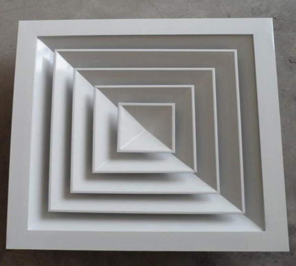 方(fāng)形散流器先(xiān)調挺(tǐng)直,表麵光潔,葉(yè)片角度為固定式,葉(yè)片采用夾角片(piàn)衝壓連接,整(zhěng)個葉片與邊框(kuàng)采用分離式(shì)結構,以方便安裝與調節。設計時可根據房間造型不同,選(xuǎn)用不同出風方向的散流器,可與調節(jiē)閥配套(tào)使用鋁合金(jīn)表麵經陽極(jí)氧化處理,也可根據(jù)用戶要求進行靜電噴塑處理。